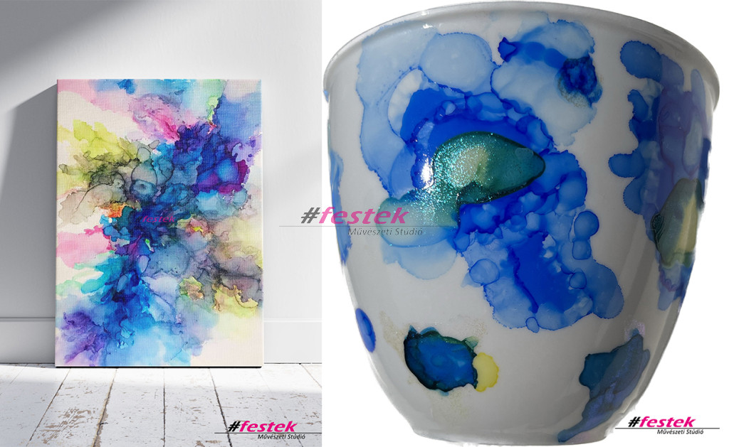 Ezen a wokshop-on választhatsz, hogy festményt készítesz vagy bögrét festenél a különleges hatást eredményező tintával.