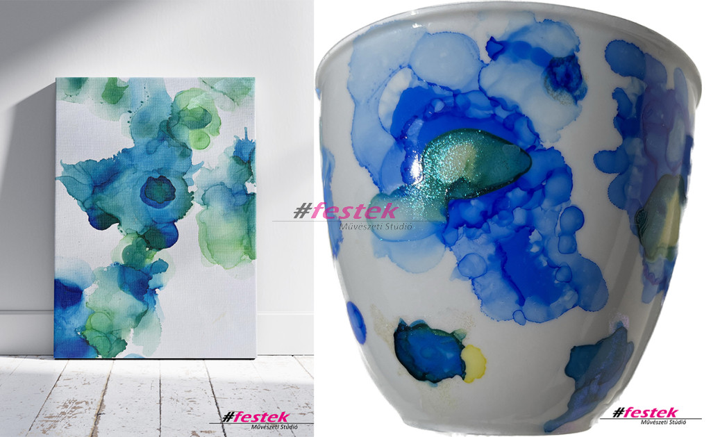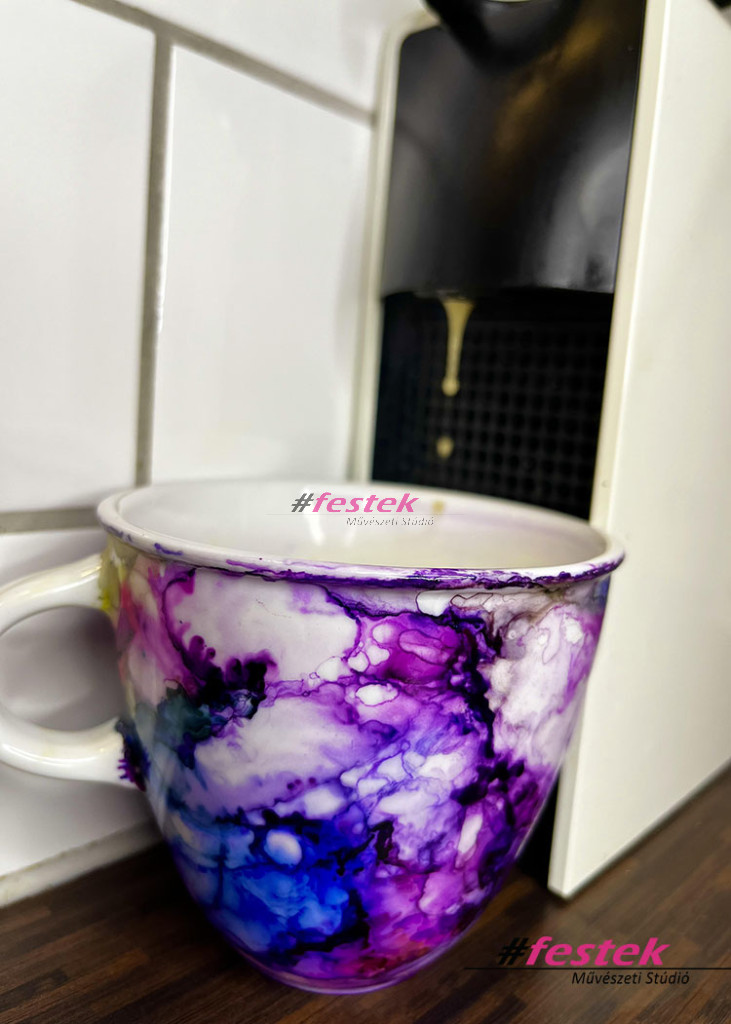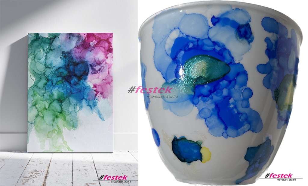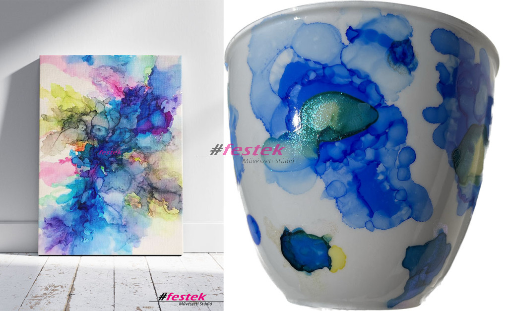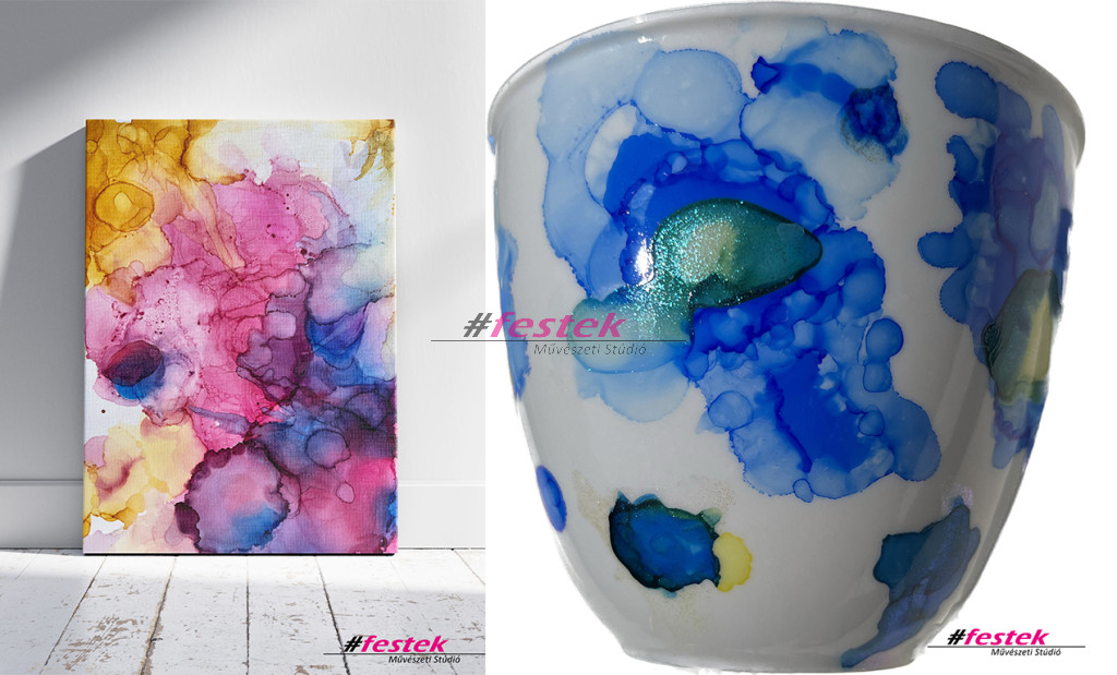 Ezen a wokshop-on választhatsz, hogy festményt készítesz vagy bögrét festenél a különleges hatást eredményező tintával.