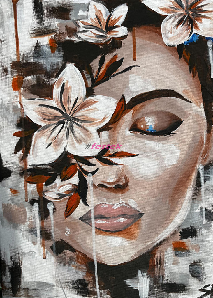 Kézzel festett akril festmény fa keretre feszített vásznon.