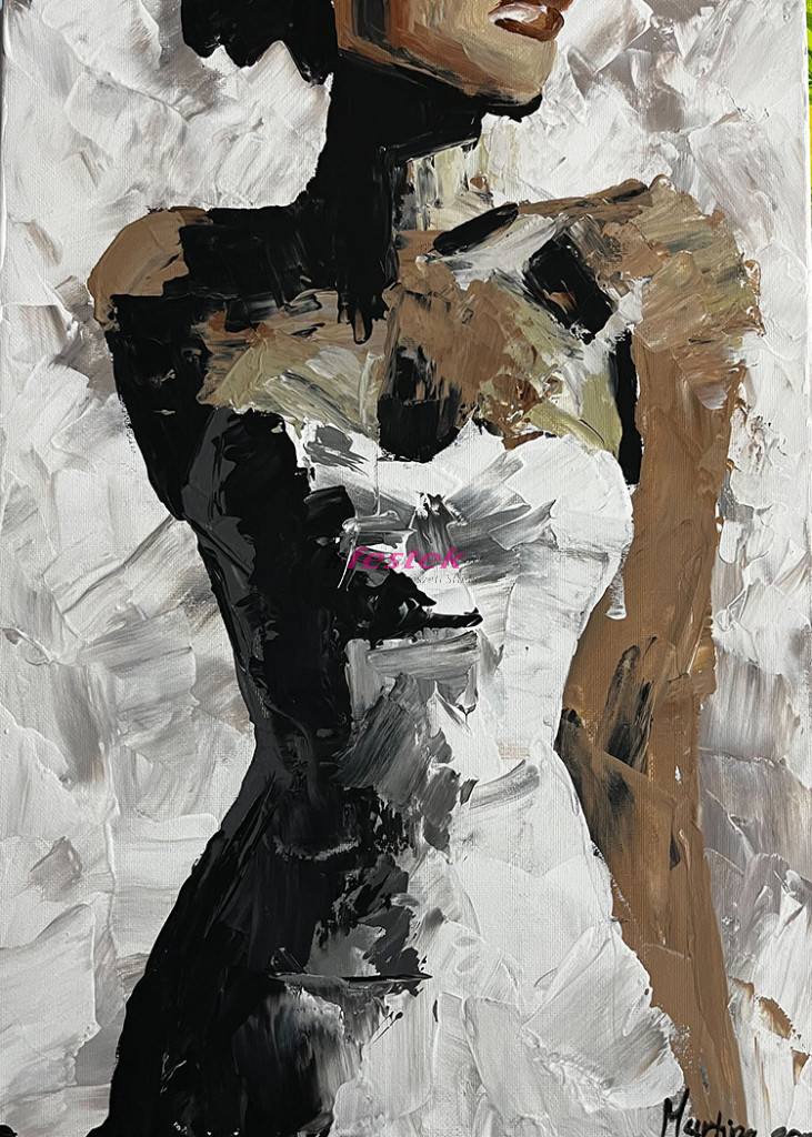 Kézzel festett akril festmény fa keretre feszített vásznon.