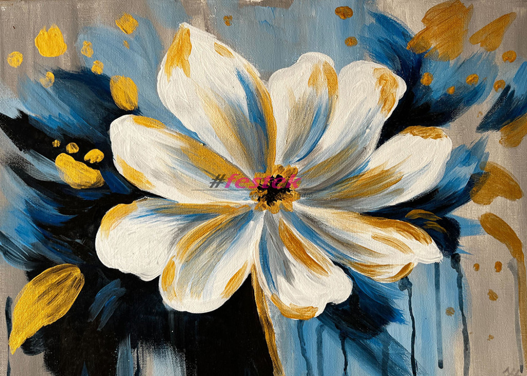 Kézzel festett akril festmény fa keretre feszített vásznon.