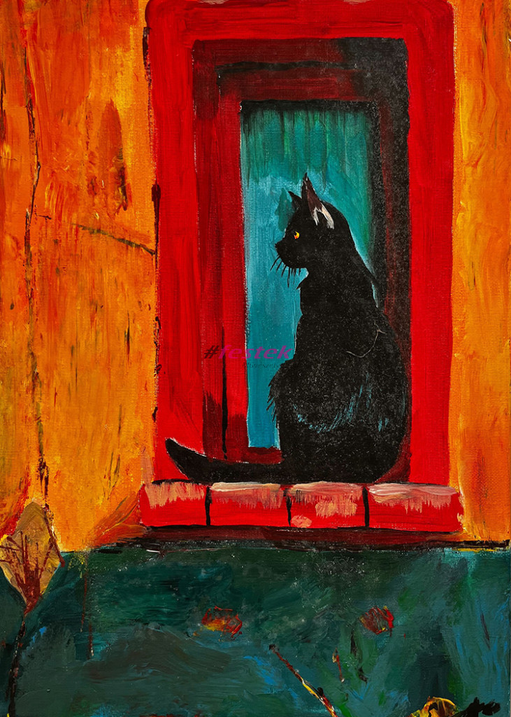 Kézzel festett akril festmény fa keretre feszített vásznon.