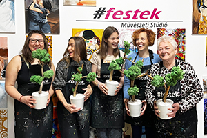 - Élményfestés: Festés esetén a kép szabadon választható a Jelenlegi eseményeink közül, megnézheted még Facebook és Instagram oldalunkat, valamint a Festmények közül is válogathatsz.
