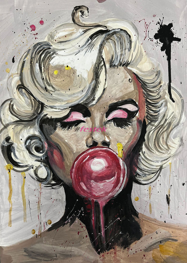Kézzel festett akril festmény fa keretre feszített vásznon.