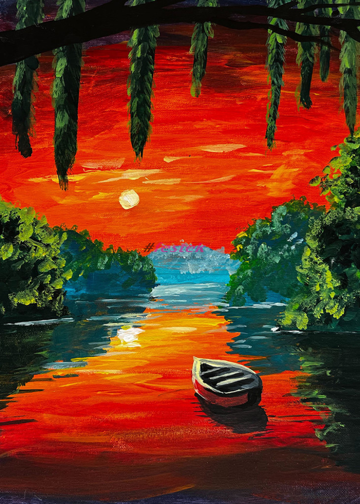 Kézzel festett akril festmény fa keretre feszített vásznon.