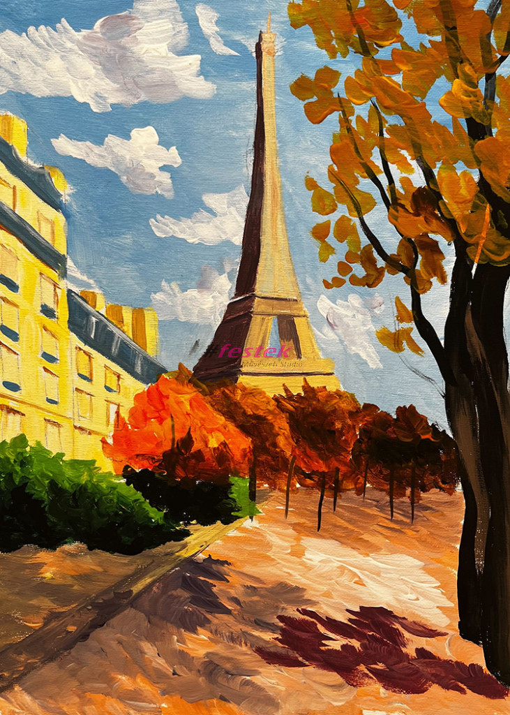 Kézzel festett akril festmény fa keretre feszített vásznon.