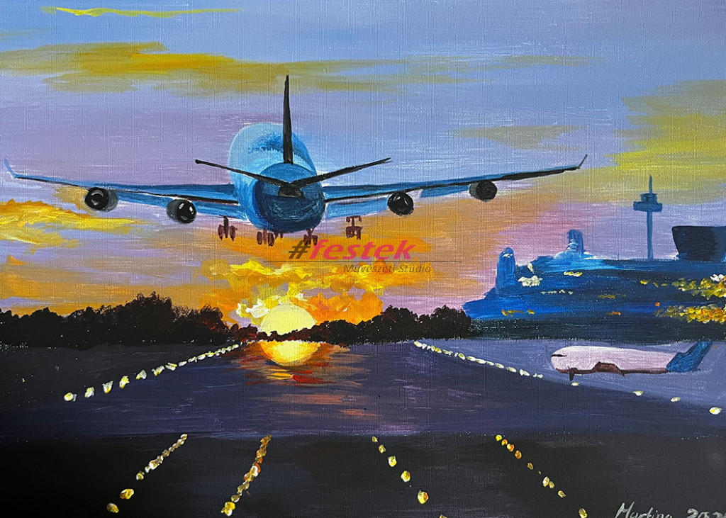 Kézzel festett akril festmény fa keretre feszített vásznon.