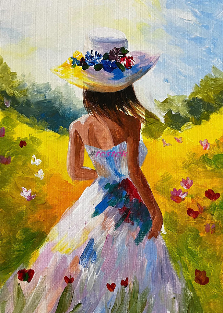 Kézzel festett akril festmény fa keretre feszített vásznon.
